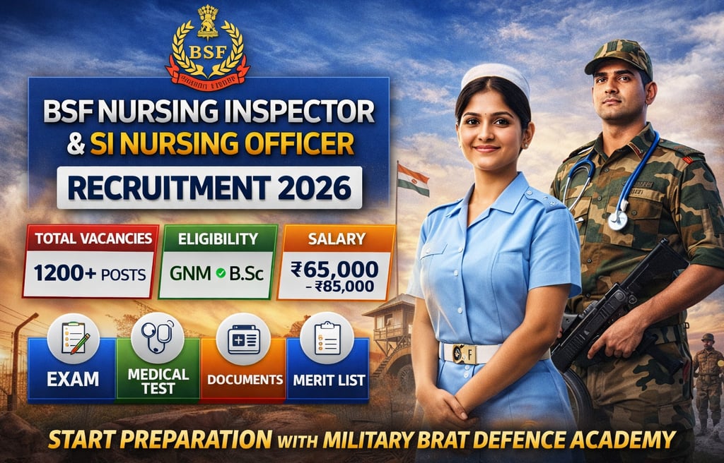 The Border Security Force (BSF) is expected to release a massive recruitment drive for medical and nursing cadres under BSF Nursing Recruitment 2026. This includes highly searched posts such as BSF Nursing Inspector 2026 and BSF SI Nursing Officer Recruitment 2026, which are among the most demanded government nursing jobs in India.